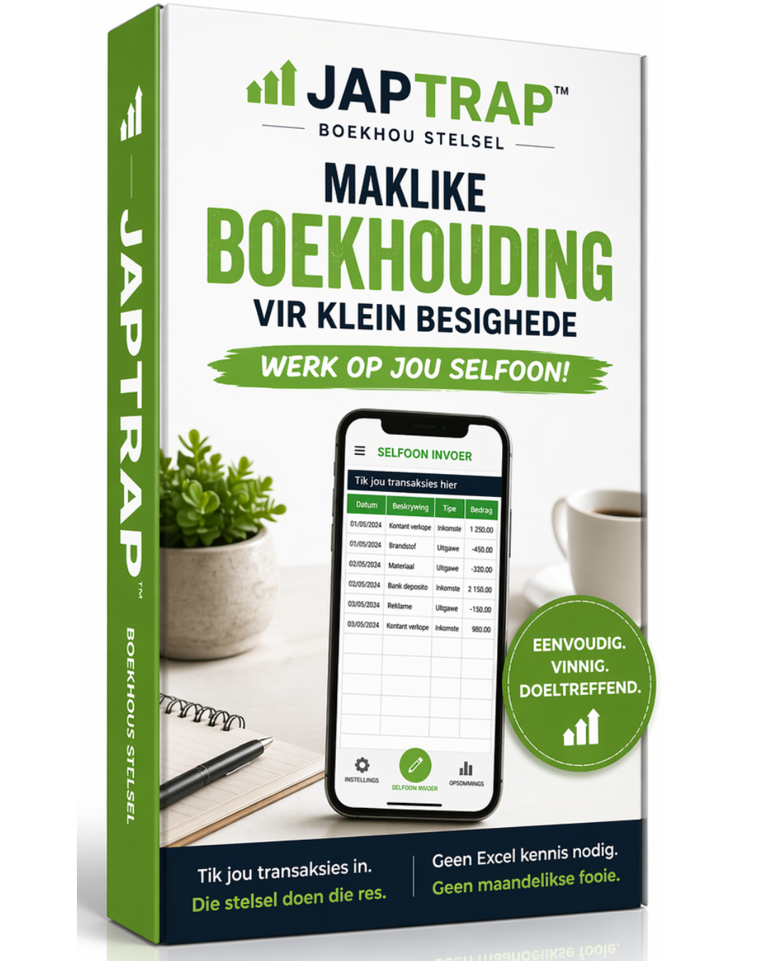 Japtrap™ is ’n eenvoudige, selfoon-vriendelike boekhou stelsel vir mikro besighede in Suid-Afrika wat jou help om jou inkomste en uitgawes maklik te bestuur — sonder sagteware, jargon of vorige kennis.